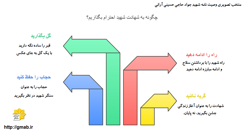 - برادرانم و پدرم ! رهرو راه شهیدان باشید و اسلحه ای که از دوش من افتاده بردارید و راهم را ادامه دهید .